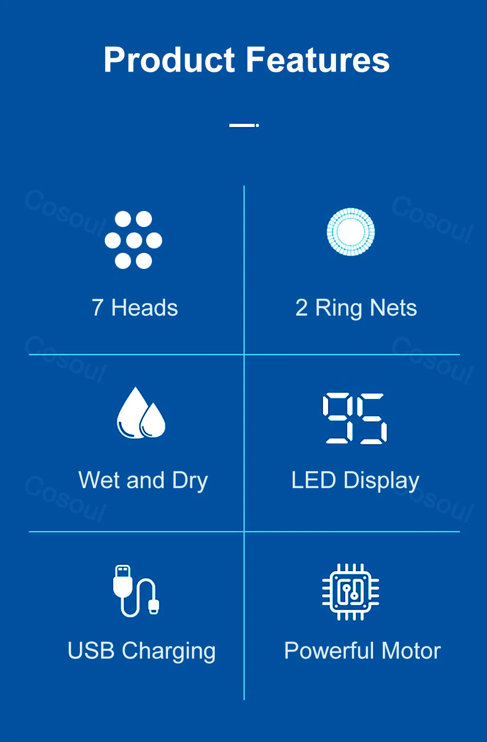 The ultra-flexible 7D floating heads automatically adapt to the curves of your face, neck, jawline, and scalp.